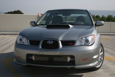 Tomei/ARMS M7760 turbo, Tomei Equal Header and Uppipe Kit, Denso fuel pump, Power Enterprise 800 cc top feed fuel injectors, Fujitsubo turboback exhaust, black Samco Sport Silicon Intercooler Elbow, and of course a bullet-proof EcuTek Shiggy-tune. Otherwise, Bob's STI is all stock, with Limited leather interior, sunroof, and STI front lip.